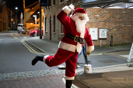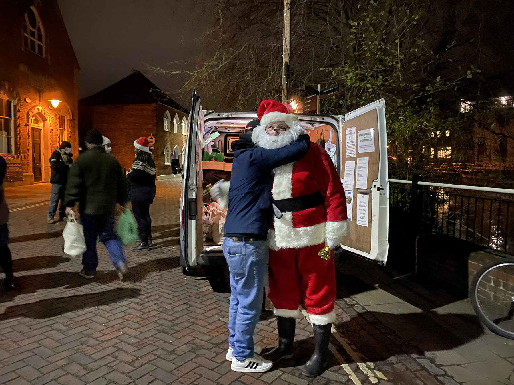 Santa gave out parcels. The contents donated by Newbury Freemasons and the bags beautifully printed by Inks Personalized. A wonderful community joint initiative. Revd Gary Collins from St Johns Church Newbury helped Santa too as he does every year.