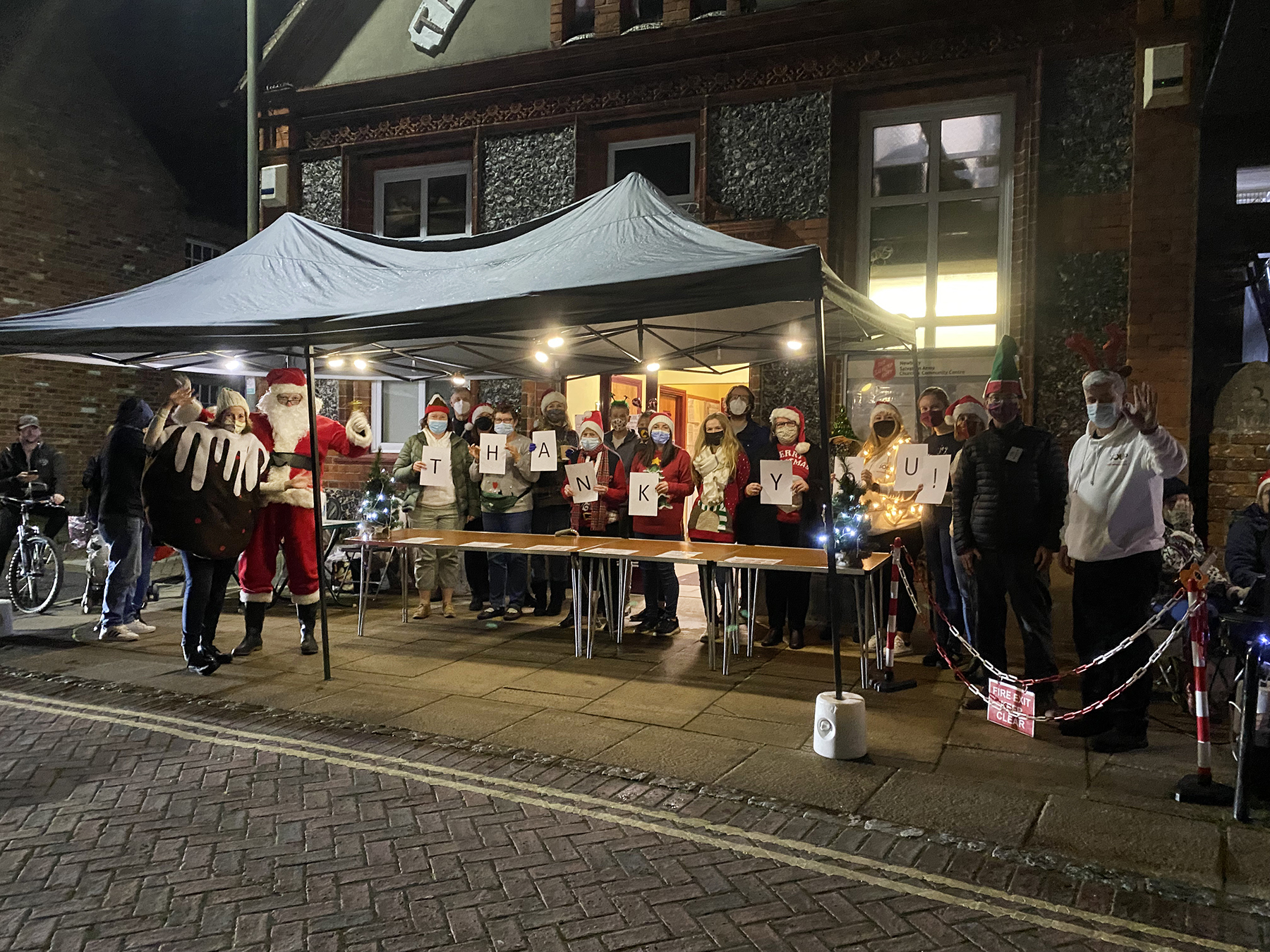 NUTS, Newbury Town Strummers (16 in all) came and under a gazebo of fairy lights entertained the clients who came for a meal. Even a rendition of Elvis Presley was sung by a client which truly was magical.