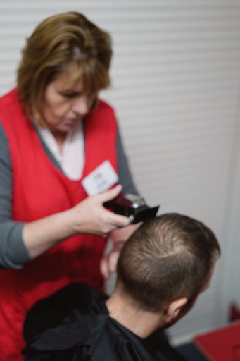 Kate will be in next week to cut hair. In a two-hour session she can do up to 16 people. We keep her supplied with cups of tea.  Both of these wonderful ladies do such a fantastic job with the people they help each week. We are so honoured to have them on our team.