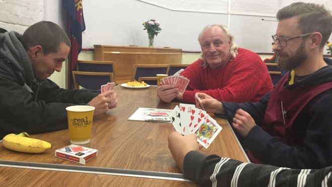 An unusual Kitchen tonight. As last week not particularly busy, but full-on for lots of different reasons. That said, by 7.00pm we were down to about 15 regular clients who all said they like it when it is quiet. Tonight we had Chess, Battleships and the regular card games. It was lovely to see 'D'[...]