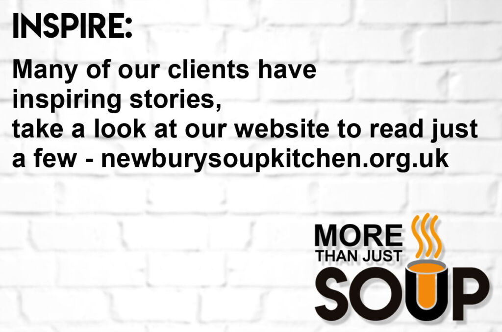 The Newbury Soup Kitchen is a registered charity with the Charity Commission (Registration Number: 1179298). Registered Office: 1 Hambridge Lane, Newbury, Berkshire, RG14 5TU.