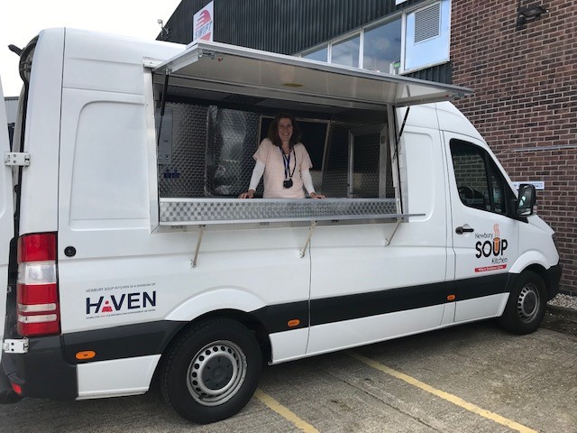 With all this in mind it has been decided to buy and convert a van. This means we can be more flexible with our food provision and expand the number of sessions per week. We are intending to open on a Wednesday from the Wharf from August 2021. Funding has come from three sources Newbury Freemasons, MCKS Foundation and Berkshire Community Fund. This vehicle will also enable us to use it for fundraising events and awareness. WE are excited and looking forward to using this wonderful vehicle…..it is big though!!