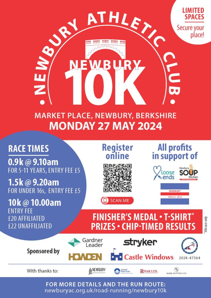 Newbury 10k run will be held in Market Place on Monday 27th May, all profits will go to local charities including The Newbury Soup Kitchen! To sign up please follow this link: http://bit.ly/newbury10k2024.