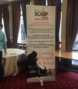 We put up our new banner designed by Phil who himself is an ex rough sleeper and it looked great, by far the best and most informative. It was good to see Newbury Soup Kitchen represented in this way. Newbury Soup Kitchen does not always get positive support and feedback. There was a person commenting in the Q&A session that small charities such as Soup Kitchens are a STICKING PLASTER for a bigger problem. We are at the gritty end and often first place of engagement with people dealing with homelessness. It is not uncommon for the volunteers to treat self harming wounds, acute First Aid situations, dealing with disagreements and difficult potentially explosive situations or just being there as support and comfort to a person in need.